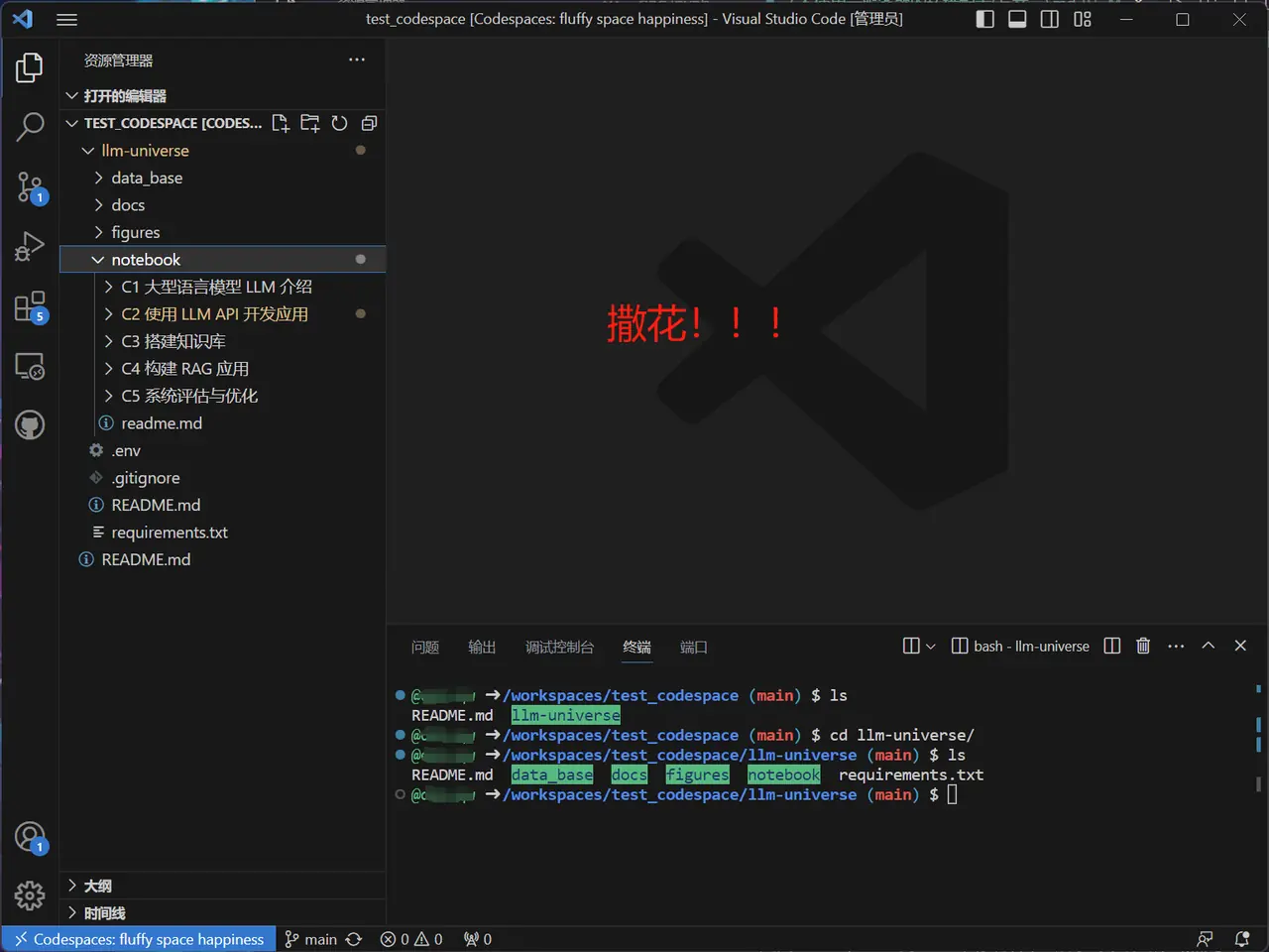 - 成功连接到了 codespace